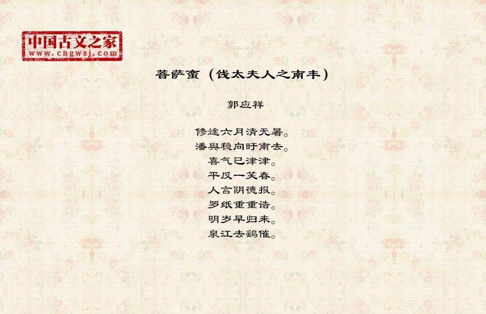 《菩萨蛮(饯太夫人之南丰)》的原文打印版(郭应祥)