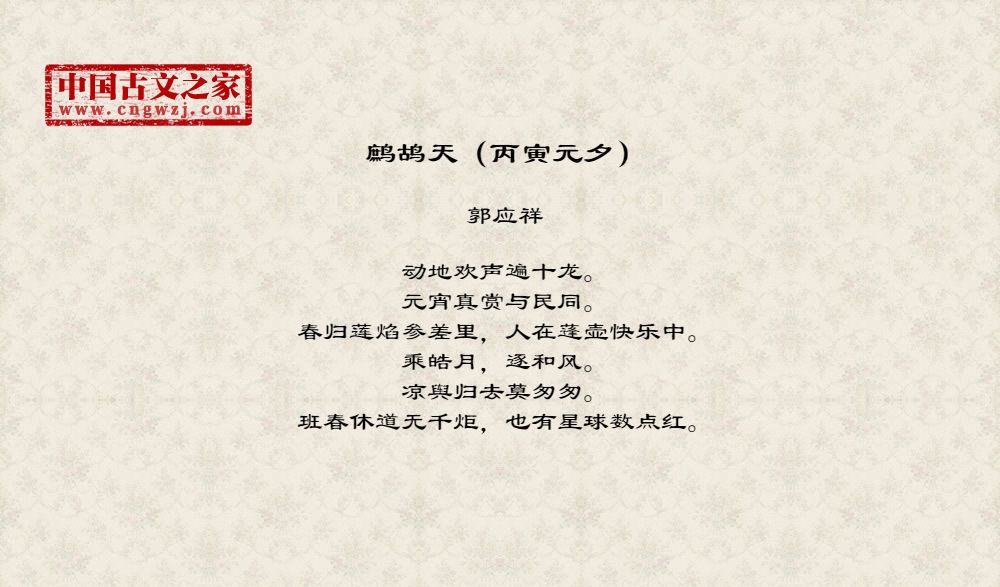 动地欢声遍十龙。元宵真赏与民同。春归莲焰参差里,人在蓬壶快乐中。乘皓月,逐和风。凉舆归去莫匆匆。班春休道无千炬,也有星球数点红。