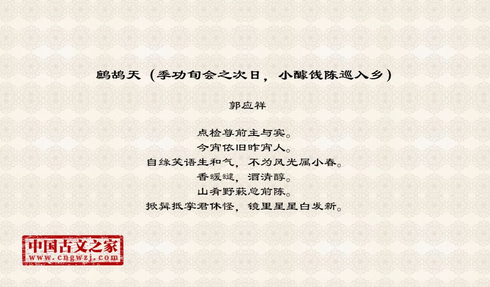 《鹧鸪天(季功旬会之次日,小醵饯陈巡入乡)》的原文打印版(郭应祥)