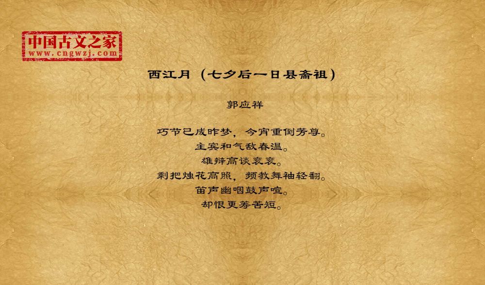 《西江月(七夕后一日县斋袓)》的原文打印版(郭应祥)