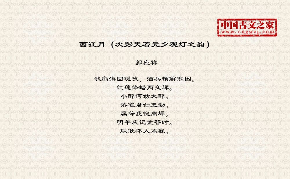 《西江月(次彭天若元夕观灯之韵)》由郭应祥创作