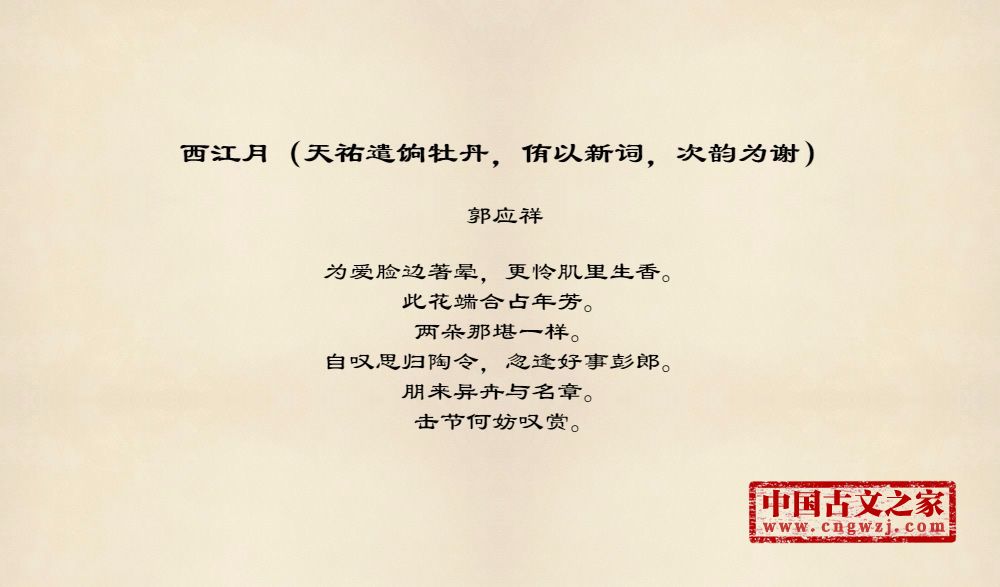 《西江月(天祐遣饷牡丹,侑以新词,次韵为谢)》的原文打印版(郭应祥)
