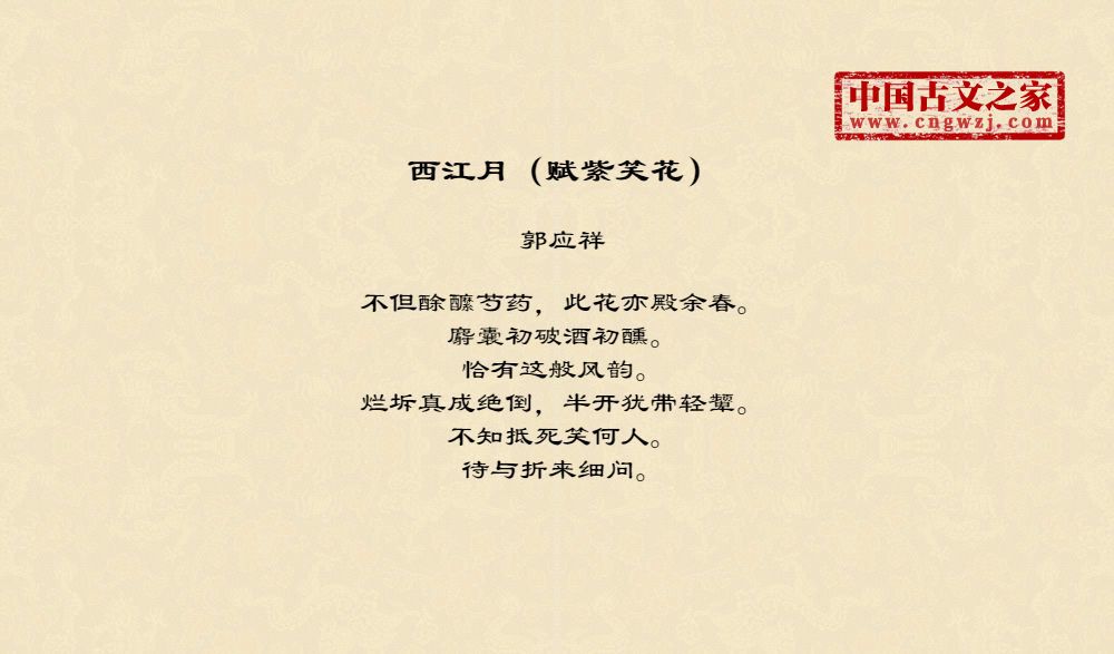 不但酴醿芍药,此花亦殿余春。麝囊初破酒初醺。恰有这般风韵。烂坼真成绝倒,半开犹带轻颦。不知抵死笑何人。待与折来细问。