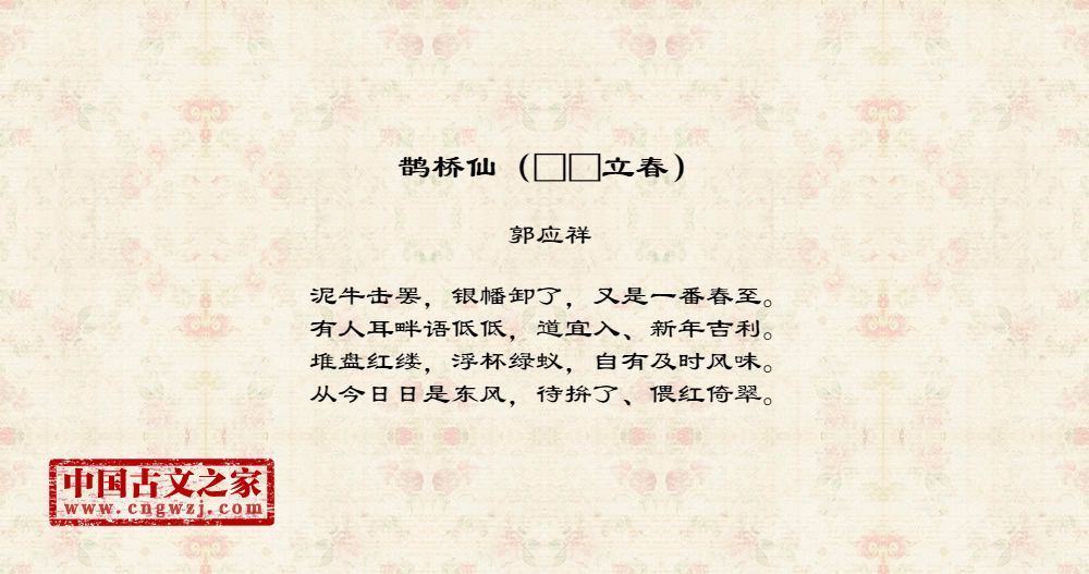 泥牛击罢,银幡卸了,又是一番春至。有人耳畔语低低,道宜入、新年吉利。堆盘红缕,浮杯绿蚁,自有及时风味。从今日日是东风,待拚了、偎红倚翠。