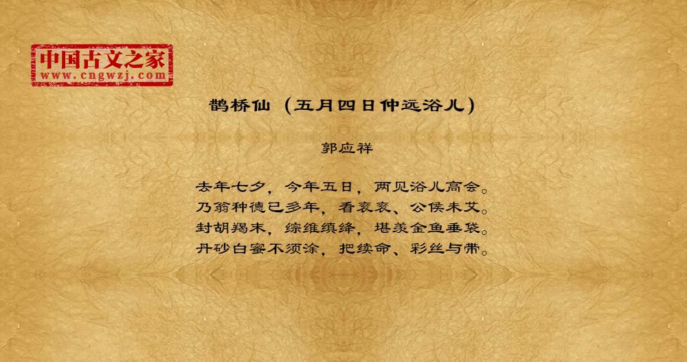 《鹊桥仙(五月四日仲远浴儿)》由郭应祥创作