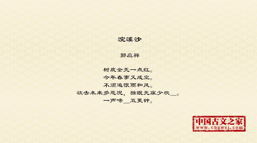 树底全无一点红。今年春事又成空。不须追恨雨和风。欲去未来多恶况,独眠无寐少欢_。一声啼_五更钟。