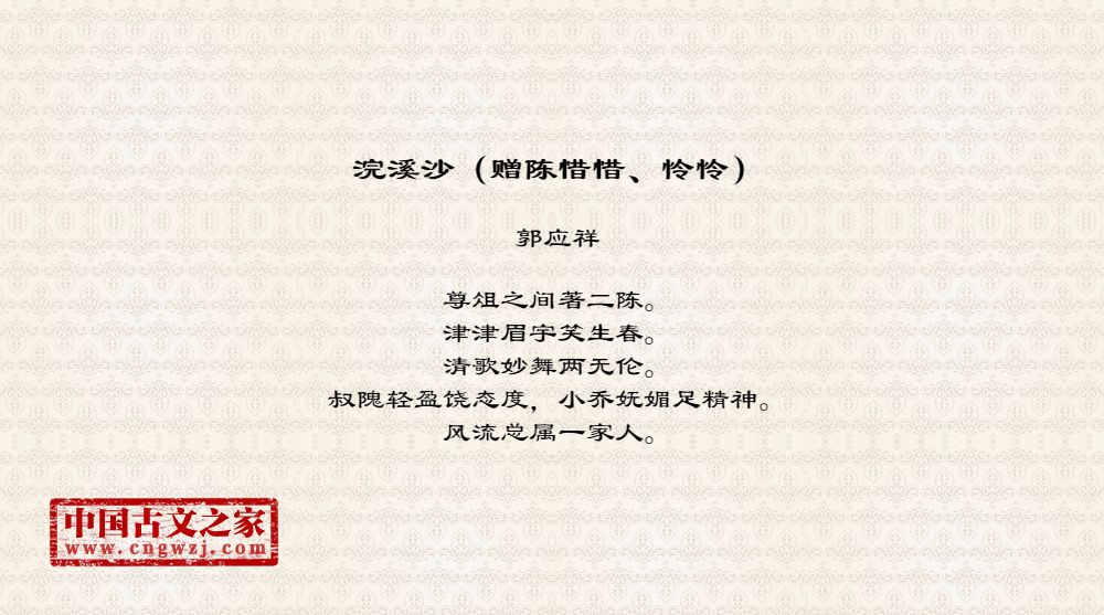 《浣溪沙(赠陈惜惜、怜怜)》的原文打印版(郭应祥)