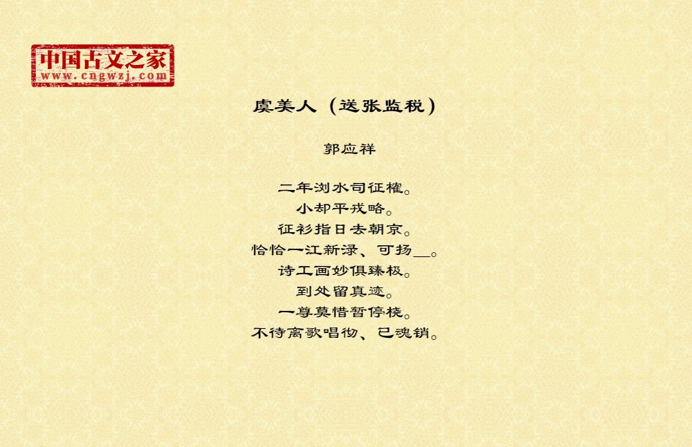 二年浏水司征榷。小却平戎略。征衫指日去朝京。恰恰一江新渌、可扬_。诗工画妙俱臻极。到处留真迹。一尊莫惜暂停桡。不待离歌唱彻、已魂销。