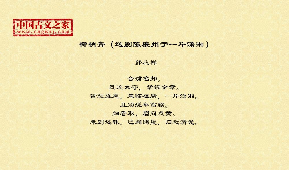 《柳梢青(送别陈廉州于一片潇湘)》的原文打印版(郭应祥)