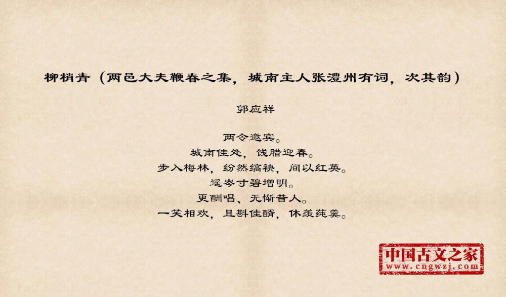 《柳梢青(两邑大夫鞭春之集,城南主人张澧州有词,次其韵)》的原文打印版(郭应祥)