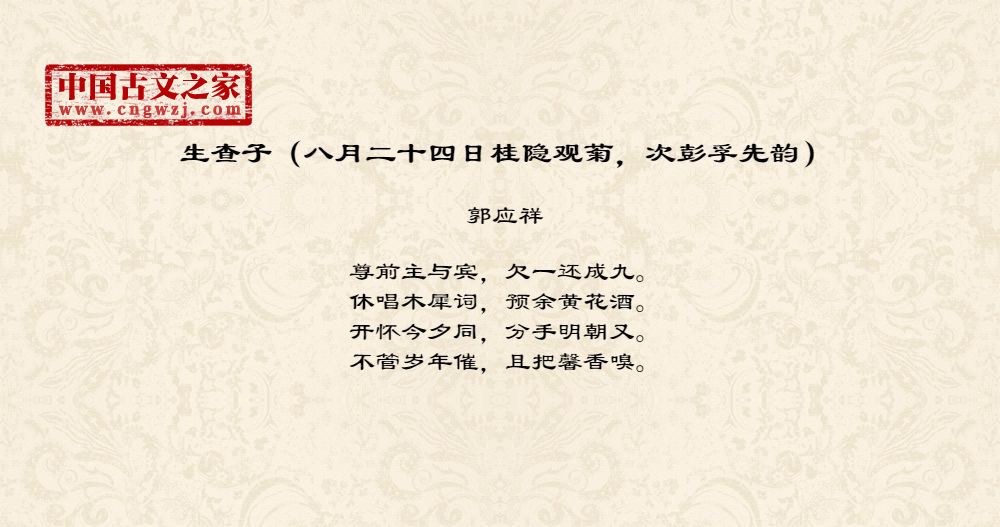 《生查子(八月二十四日桂隐观菊,次彭孚先韵)》的原文打印版(郭应祥)