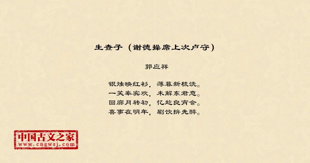 《生查子(谢德操席上次卢守)》的原文打印版(郭应祥)