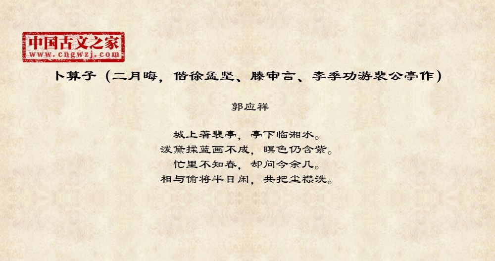 《卜算子(二月晦,偕徐孟坚、滕审言、李季功游裴公亭作)》由郭应祥创作