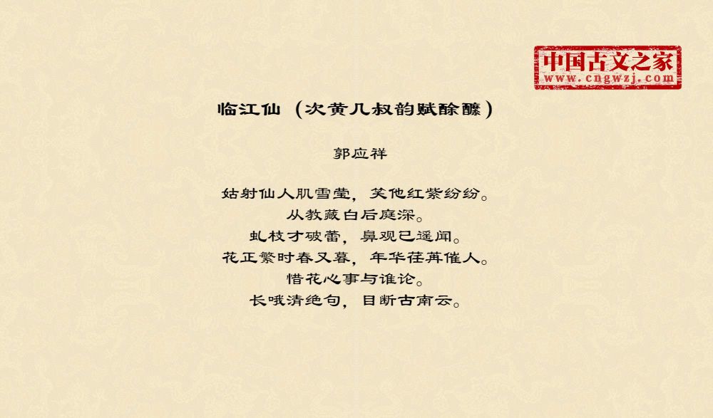 《临江仙(次黄几叔韵赋酴醿)》由郭应祥创作