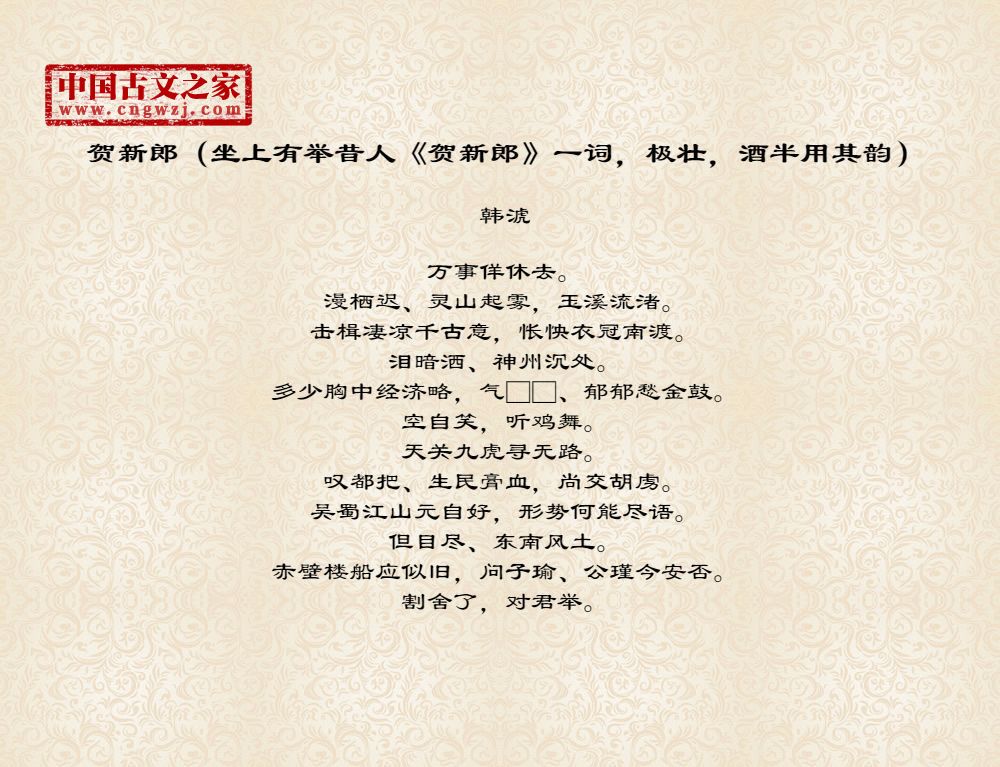 《贺新郎(坐上有举昔人《贺新郎》一词,极壮,酒半用其韵)》的原文打印版(韩淲)