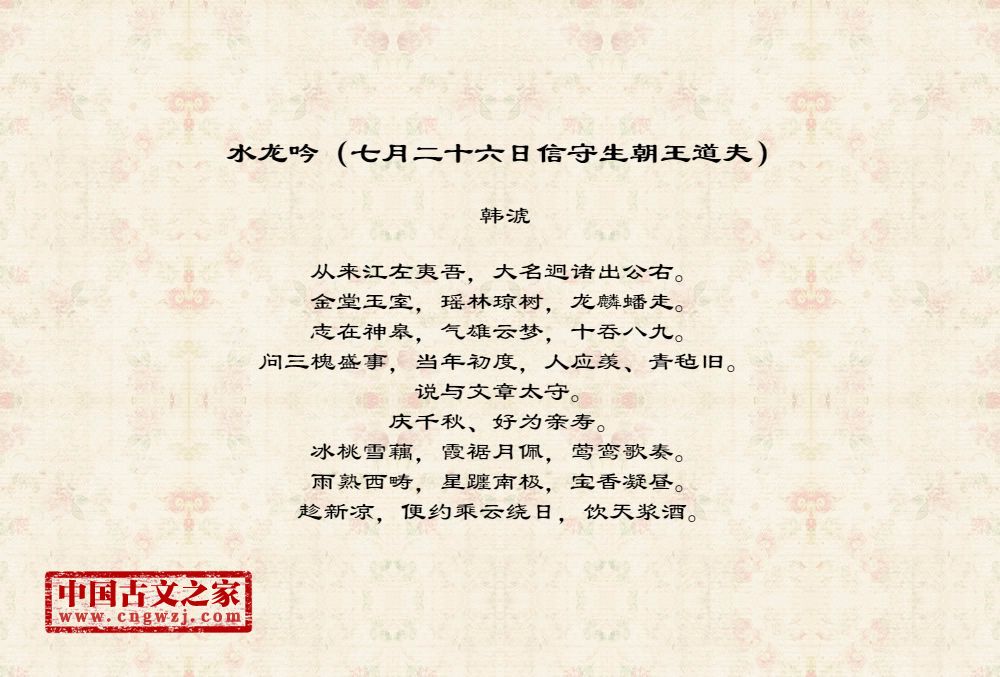 《水龙吟(七月二十六日信守生朝王道夫)》的原文打印版(韩淲)