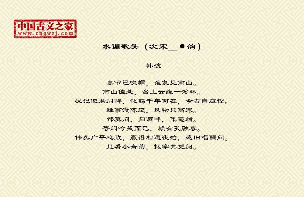 嘉节已吹帽,谁复见南山。南山佳处,台上云绕一溪环。犹记使君同醉,化鹤千年何在,今古自应慳。胜事漫陈迹,风物只高寒。都莫问,归酒畔,集毫端。等闲吟笑而已,赖有孔融尊。伟矣广平心致,赢得相遭淡泊,感旧唱酬间。且看小斋菊,抵掌共凭阑。