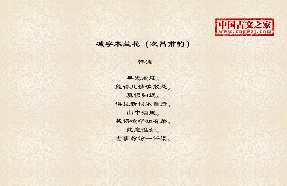 年光虚度。能得几多消散处。莫恨归迟。得见新词不自持。山中酒里。笑语喧哗知有弟。此意谁如。世事纷纷一任渠。