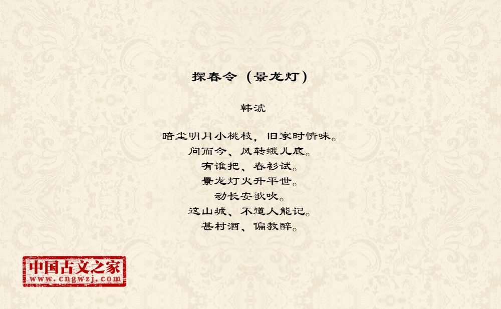 暗尘明月小桃枝,旧家时情味。问而今、风转蛾儿底。有谁把、春衫试。景龙灯火升平世。动长安歌吹。这山城、不道人能记。甚村酒、偏教醉。