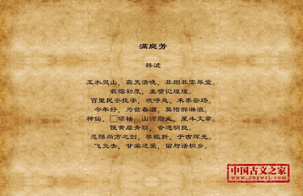 玉水灵山,霜天清晓,非烟非雾琴堂。载临初度,圭壁记煌煌。百里民安抚字,欢呼处、禾黍登场。今年好,为兹春酒,莫惜醉淋浪。神仙,□领袖,山河勋业,星斗文章。便黄扉青琐,会遇明良。愿赐尚方之剑,攀槛折、于古辉光。飞凫去,甘棠遗爱,留与话桐乡。