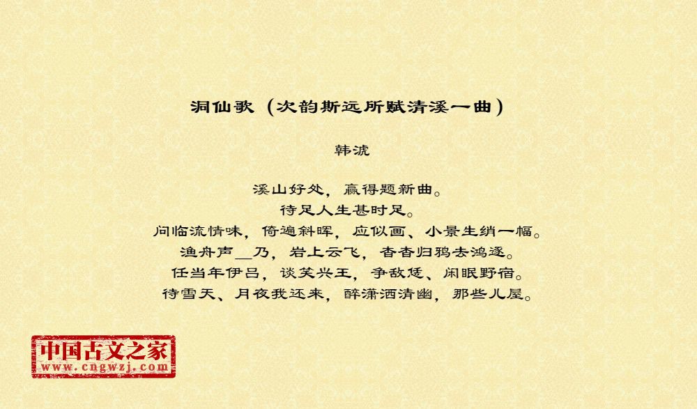 《洞仙歌(次韵斯远所赋清溪一曲)》的原文打印版(韩淲)