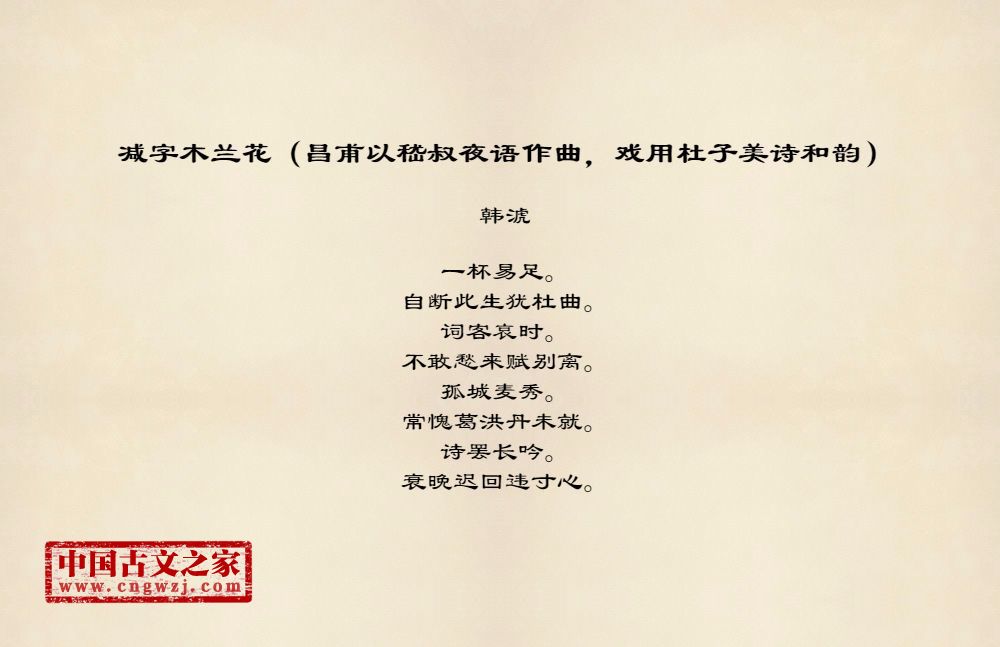 《减字木兰花(昌甫以嵇叔夜语作曲,戏用杜子美诗和韵)》的原文打印版(韩淲)