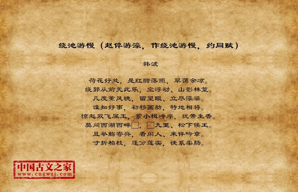 《绕池游慢(赵倅游濠,作绕池游慢,约同赋)》的原文打印版(韩淲)