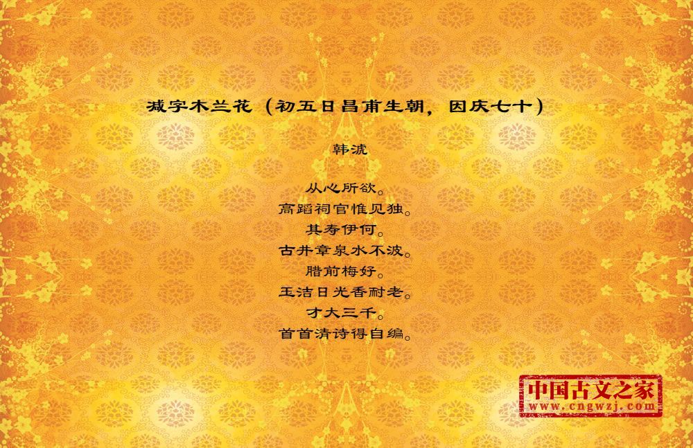 《减字木兰花(初五日昌甫生朝,因庆七十)》由韩淲创作