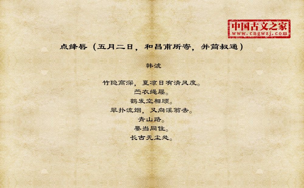《点绛唇(五月二日,和昌甫所寄,并简叔通)》的原文打印版(韩淲)