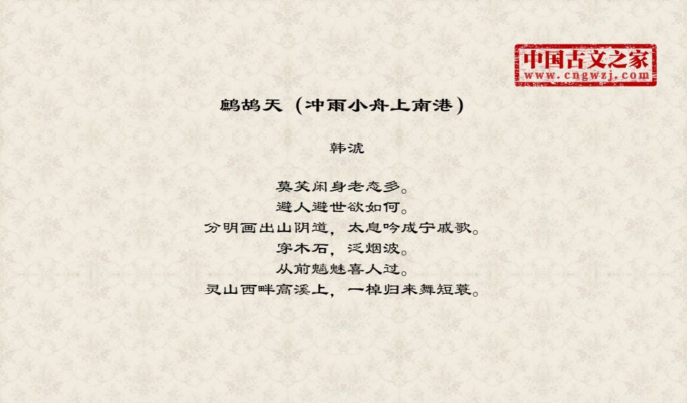 莫笑闲身老态多。避人避世欲如何。分明画出山阴道,太息吟成宁戚歌。穿木石,泛烟波。从前魑魅喜人过。灵山西畔高溪上,一棹归来舞短蓑。