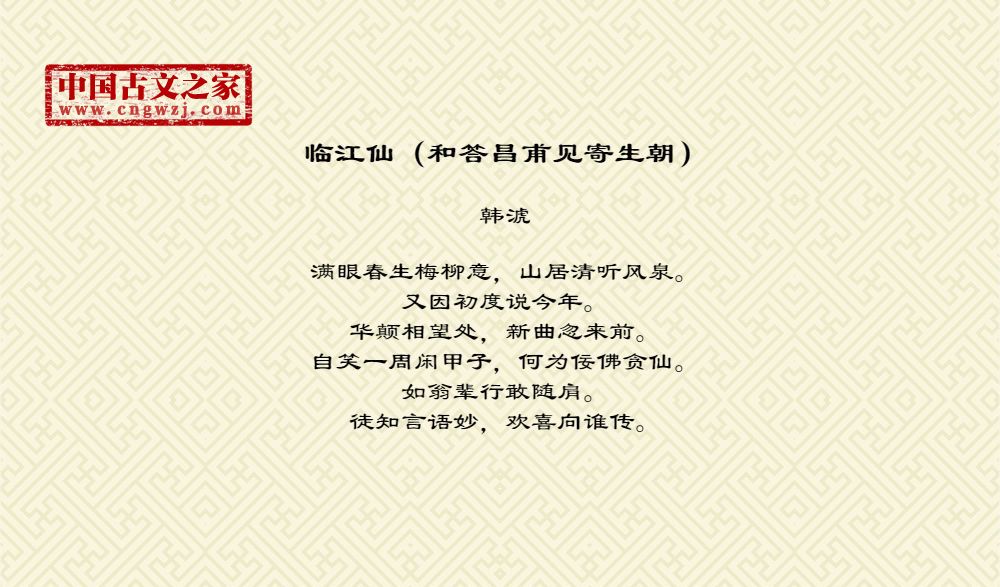 《临江仙(和答昌甫见寄生朝)》的原文打印版(韩淲)