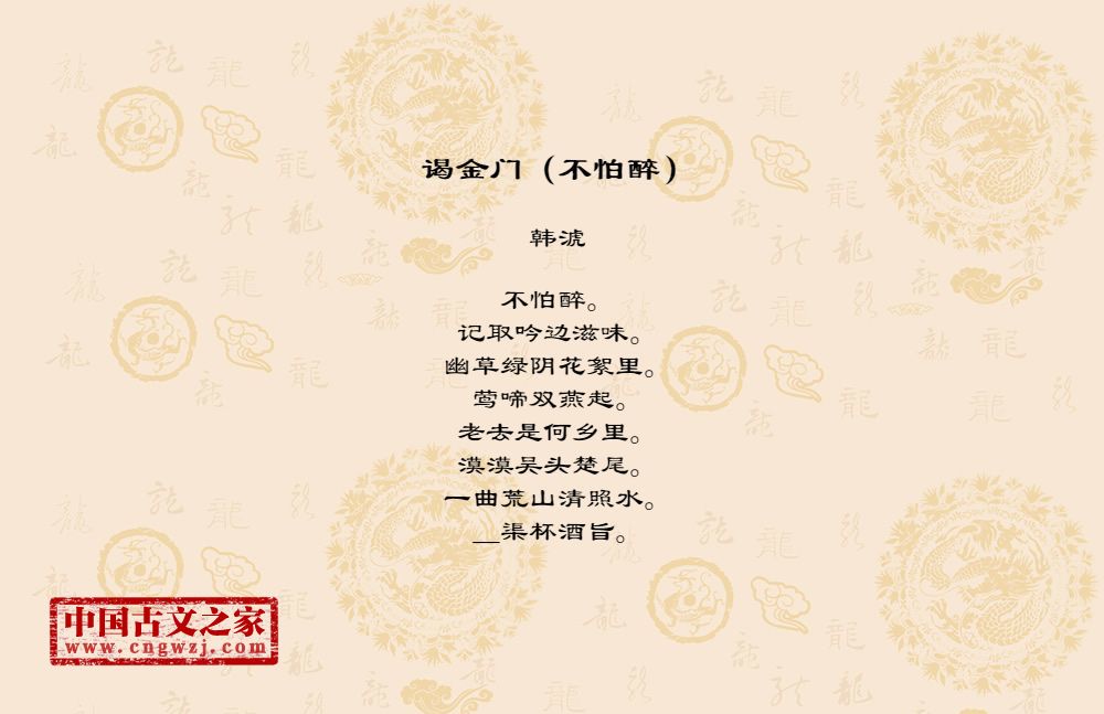不怕醉。记取吟边滋味。幽草绿阴花絮里。莺啼双燕起。老去是何乡里。漠漠吴头楚尾。一曲荒山清照水。_渠杯酒旨。