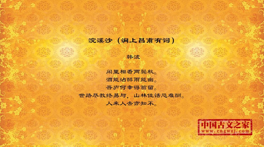 韩淲(biāo)(1159—1224)南宋诗人。字仲止,一作子仲,号涧泉,韩元吉之子。祖籍开封,南渡后隶籍信州上饶(今属江西)。从仕后不久即归,有诗名