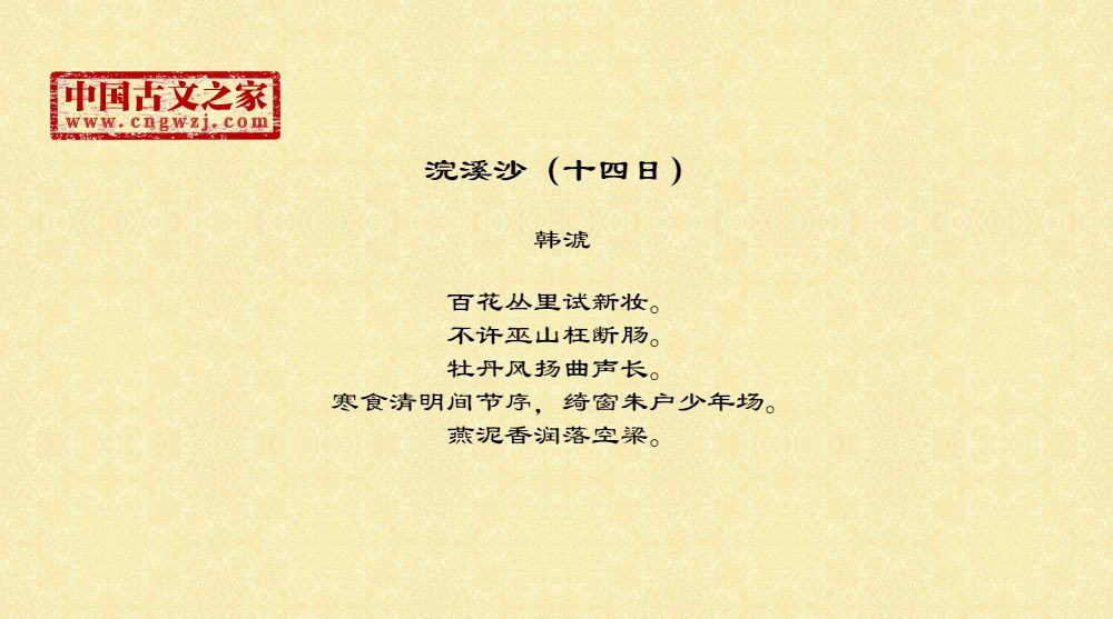 百花丛里试新妆。不许巫山枉断肠。牡丹风扬曲声长。寒食清明间节序,绮窗朱户少年场。燕泥香润落空梁。