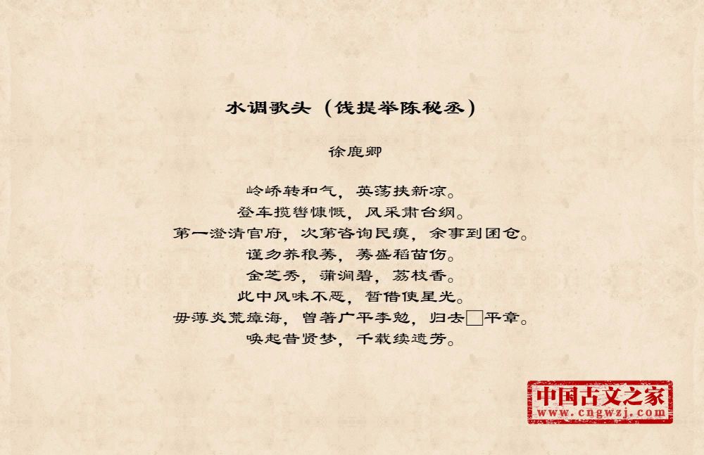 《水调歌头(饯提举陈秘丞)》的原文打印版(徐鹿卿)