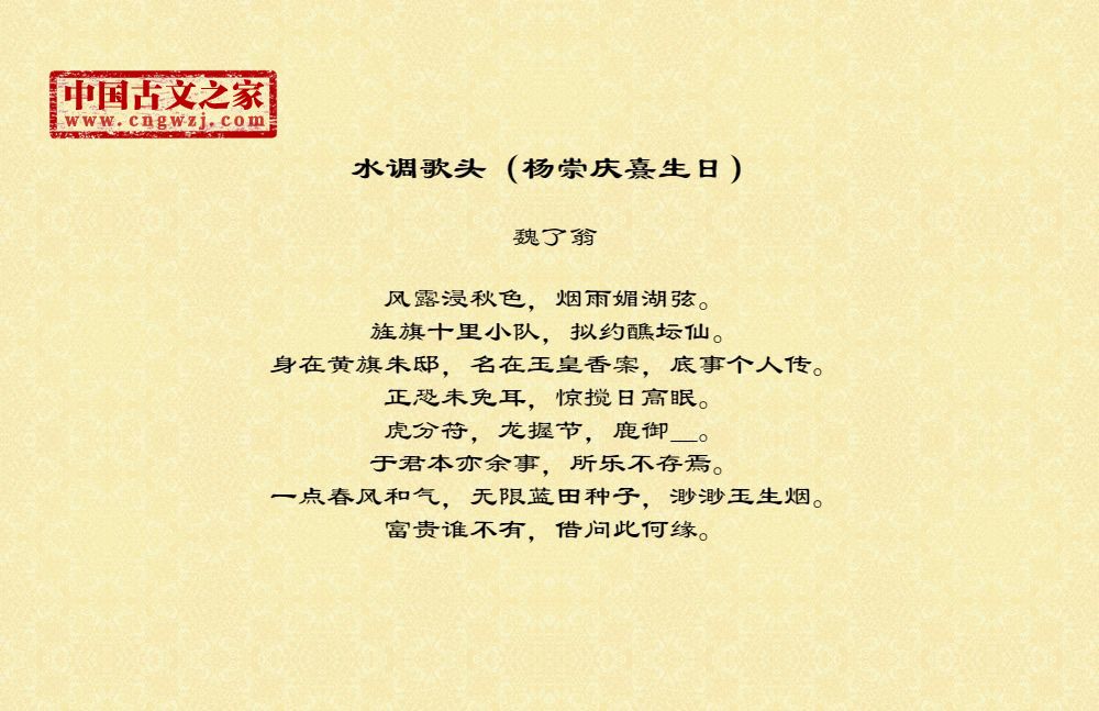 《水调歌头(杨崇庆熹生日)》由魏了翁创作
