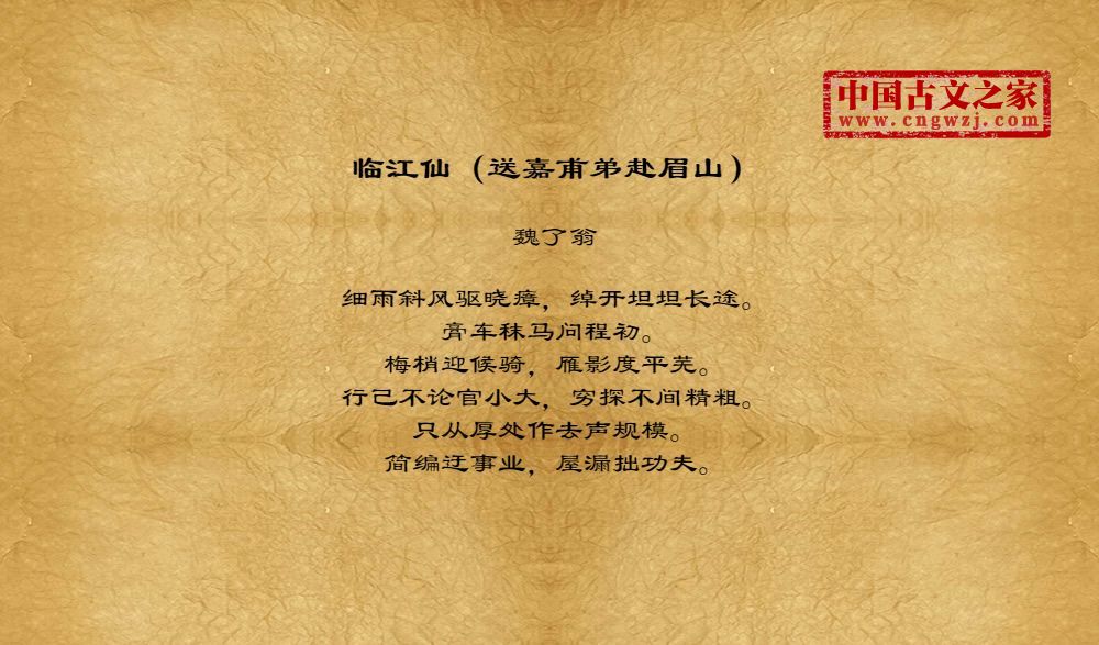 《临江仙(送嘉甫弟赴眉山)》由魏了翁创作