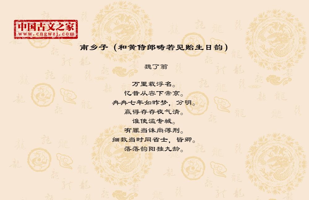《南乡子(和黄侍郎畴若见贻生日韵)》的原文打印版(魏了翁)
