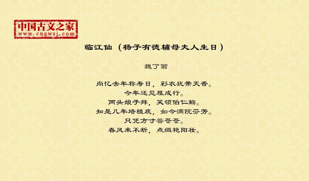 《临江仙(杨子有德辅母夫人生日)》的原文打印版(魏了翁)
