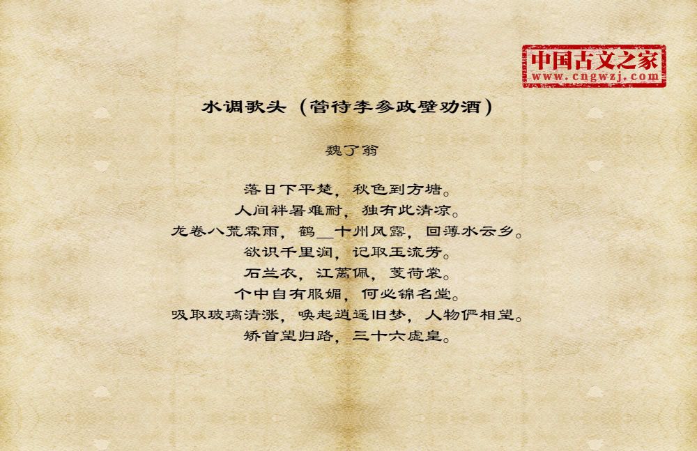 《水调歌头(管待李参政壁劝酒)》的原文打印版(魏了翁)