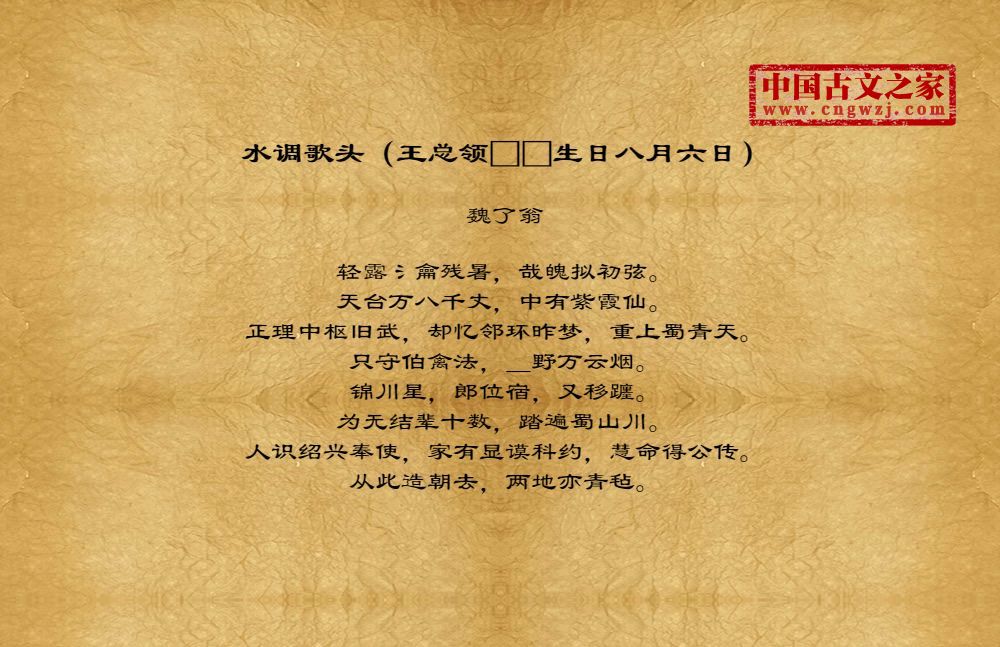 《水调歌头(王总领□□生日八月六日)》的原文打印版(魏了翁)
