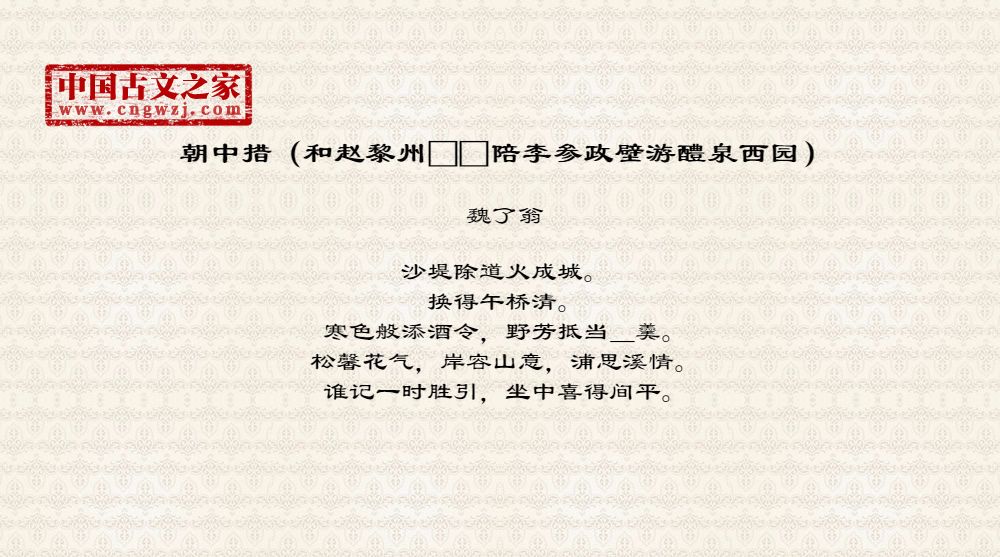 《朝中措(和赵黎州□□陪李参政壁游醴泉西园)》的原文打印版(魏了翁)