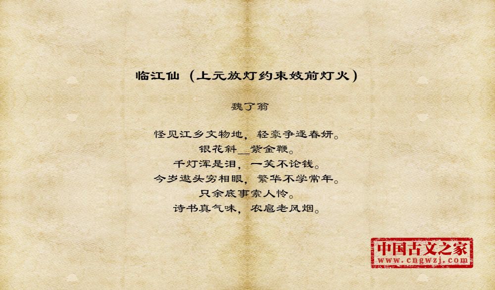 《临江仙(上元放灯约束妓前灯火)》的原文打印版(魏了翁)