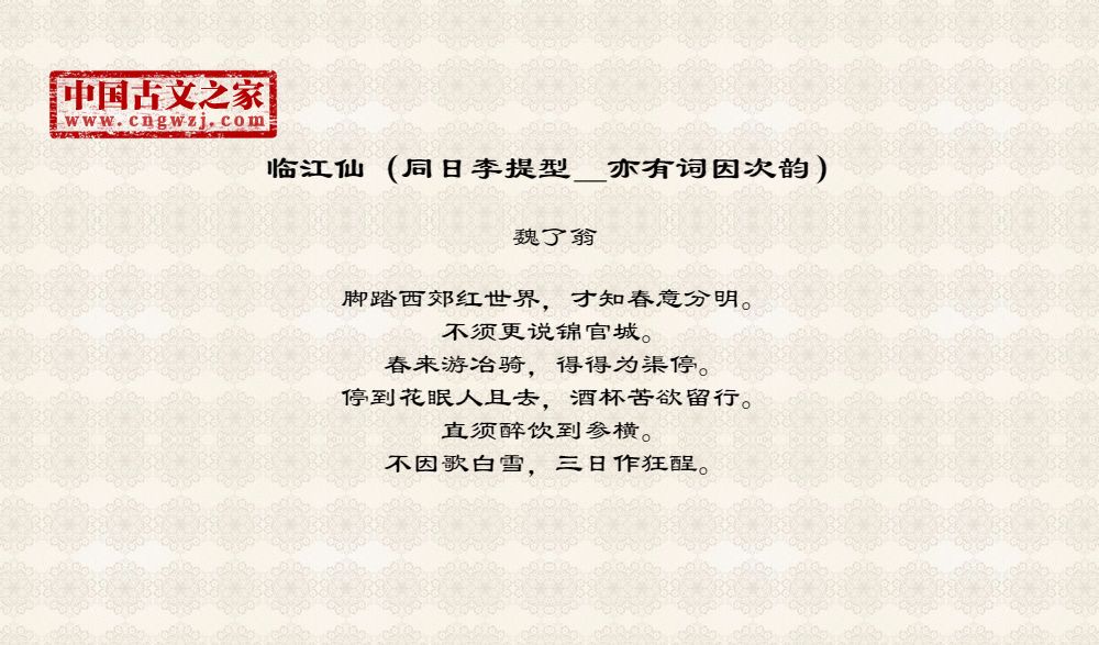 《临江仙(同日李提型_亦有词因次韵)》的原文打印版(魏了翁)