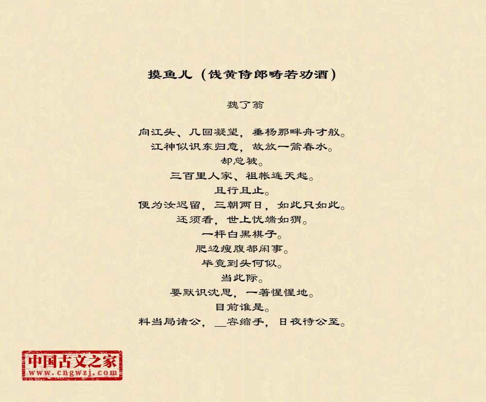 《摸鱼儿(饯黄侍郎畴若劝酒)》的原文打印版(魏了翁)