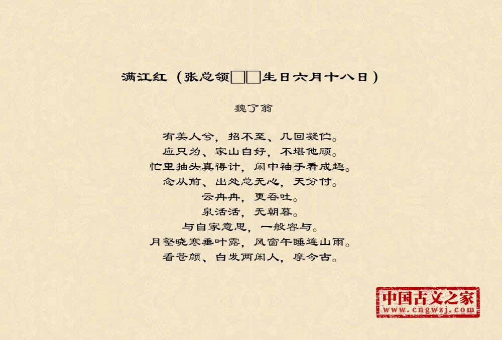 《满江红(张总领□□生日六月十八日)》的原文打印版(魏了翁)