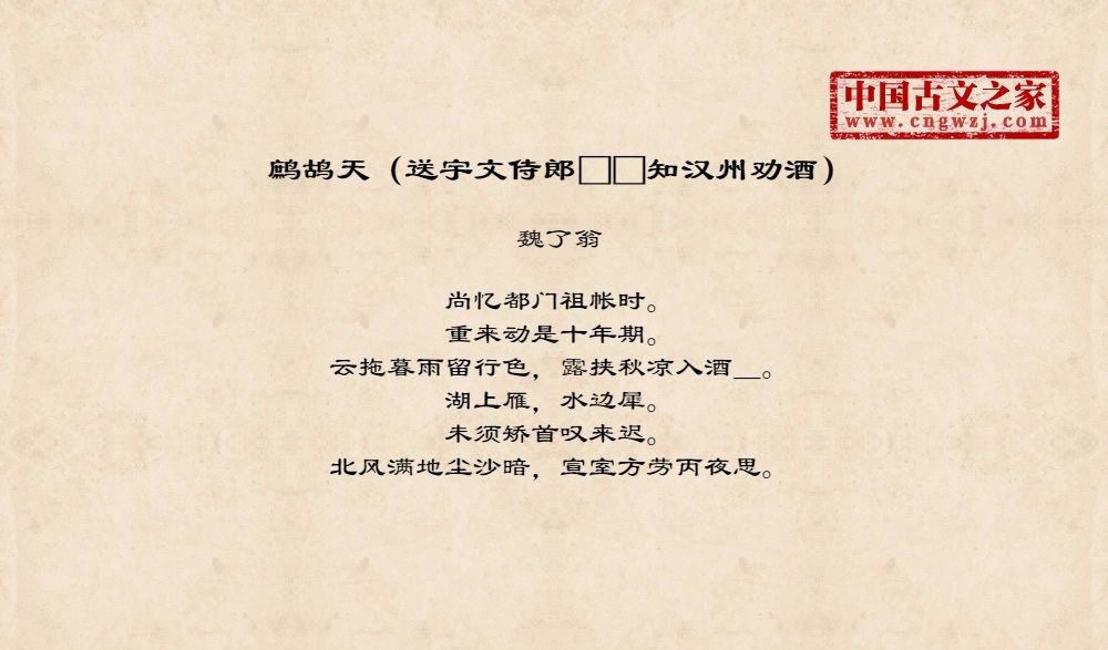 《鹧鸪天(送宇文侍郎□□知汉州劝酒)》的原文打印版(魏了翁)