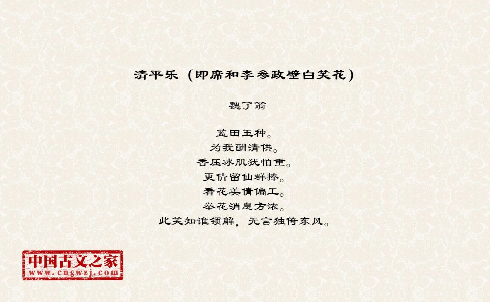 《清平乐(即席和李参政壁白笑花)》的原文打印版(魏了翁)