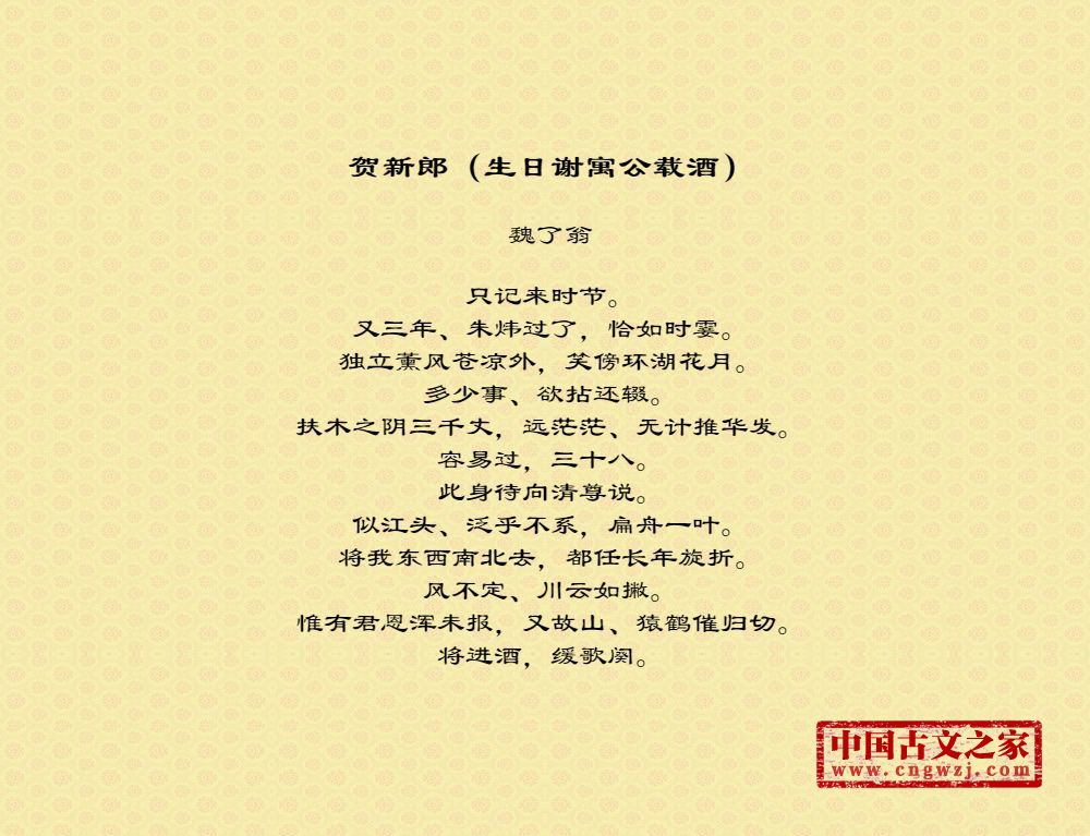 《贺新郎(生日谢寓公载酒)》的原文打印版(魏了翁)