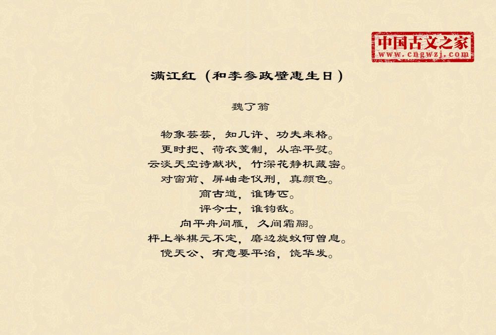 《满江红(和李参政壁惠生日)》的原文打印版(魏了翁)